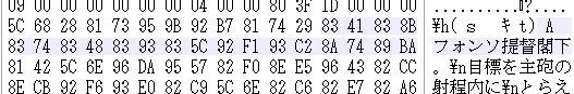 那些每4个数字代表一个汉字,Shift-JIS编码的大部分都是这样,4个数字代表一个文字,然后把这些数字一起复制(记得把中间的空格去掉哦)