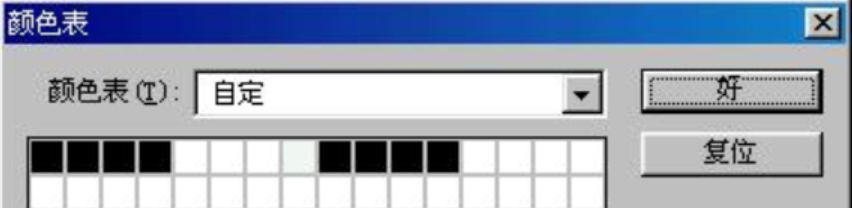 首先让我先来揭晓上次问题的答案,那些失踪的字符其实就藏在那副图片中只是无法直接看到而已,现在希望你可以跟着我一起动手把它们找出来。请点击这里下载1Data_3954_1.bmp文件,它就是用TIMCOL导出的“妖精战士Ⅲ”的字库图片,现在我们用PHOTOSHOP打开它,点击“图像”-“模式”-“颜色表”,可以看到如下的颜色表