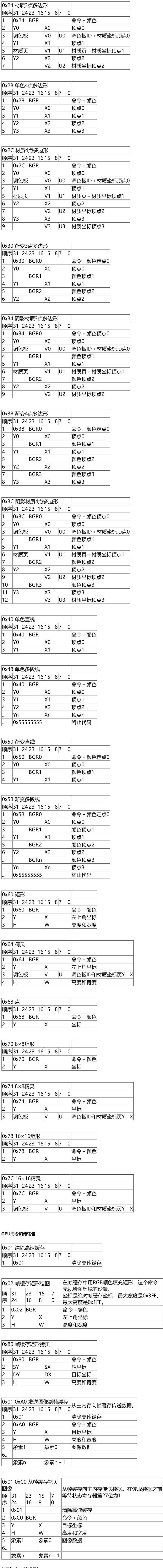 所有的绘图和绘图环境数据都作为信息包送到GPU。每一个信息包都告诉GPU怎样和在哪里绘一个图元,或者设置一个绘图环境参数。显示环境通过GPU的控制端口用一个单字命令设置。